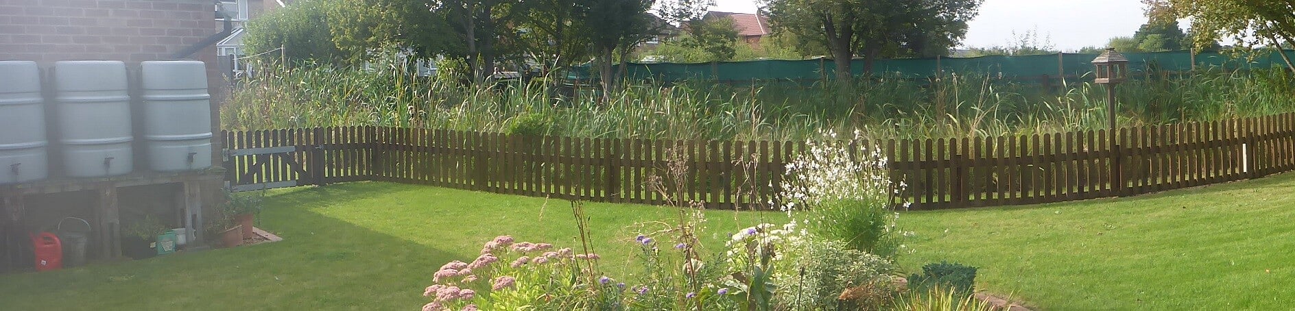 Above is a low round top picket fence built up on concrete spur posts with timber framework. This round top picket fence surrounds a natural pond in a garden and the requirement was to avoid timber in the ground in a constant damp area.