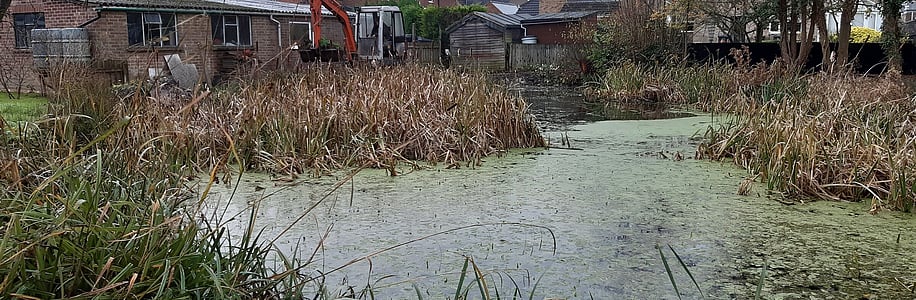 This job was to transform an area of land that the client had recently purchased. It had a well established pond fed by an underground spring and was never dry. The project started in the winter months with the clearance of lots of floating pond weed. Lots of care was taken not to disturb the banks or alter the shape of the pond. There was just enough access all the way round by arrangement with the neighbours.
